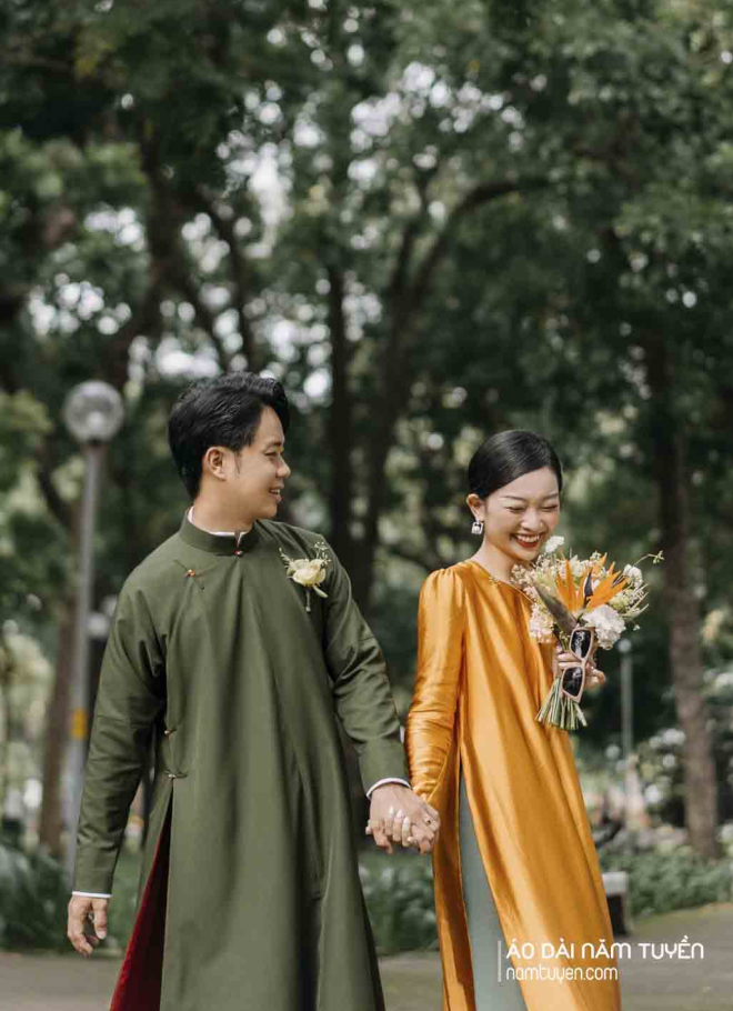 Trang phục cặp mang sự hòa hợp về màu – chất liệu – phong cách. Tạo nên hình ảnh chỉ cần nhìn thôi đã thấy đồng điệu – hạnh phúc – trang trọng.