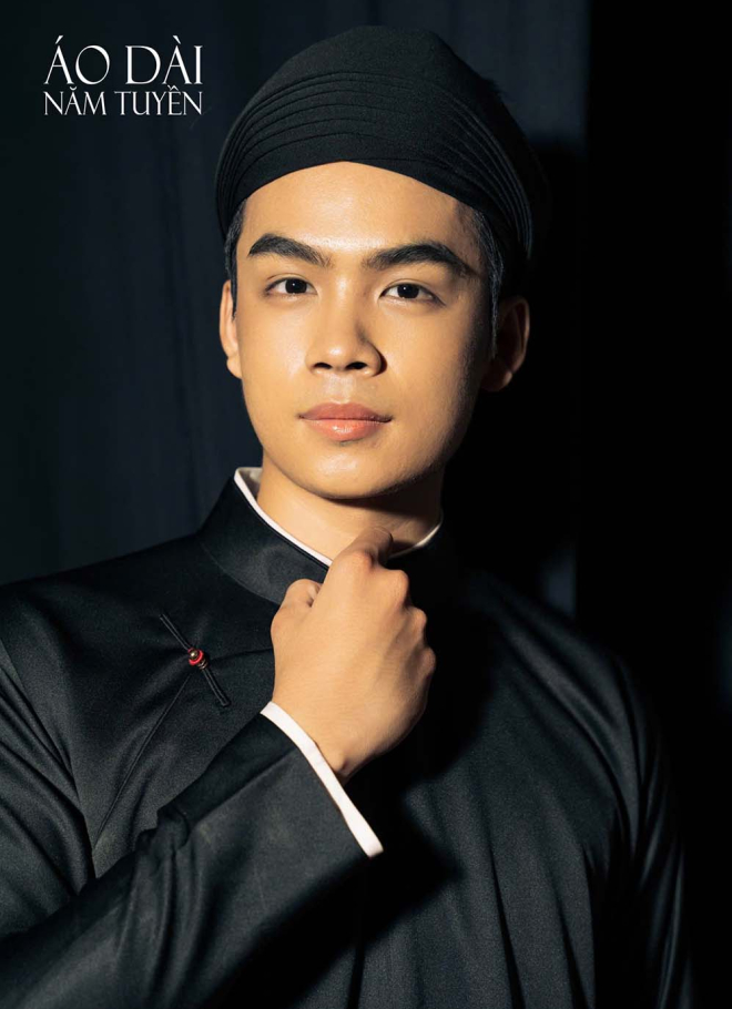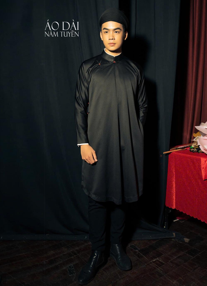 Màu đen trong áo dài ngũ thân nam thể hiện sự chín chắn, mạnh mẽ và quyền uy.