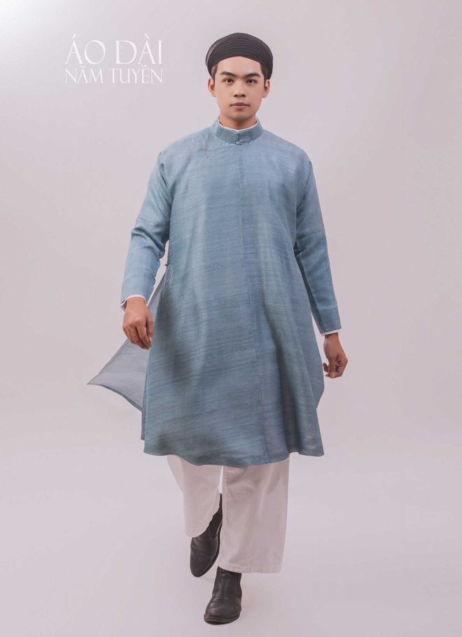 Áo dài nam đũi tơ tằm ngũ thân tay chẽn truyền thống