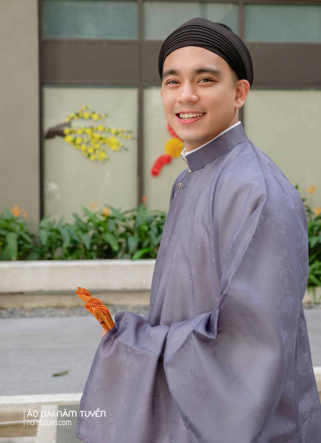 Áo dài nam tay thụng truyền thống vải Sa Hàn xám - Việt phục ngũ thân