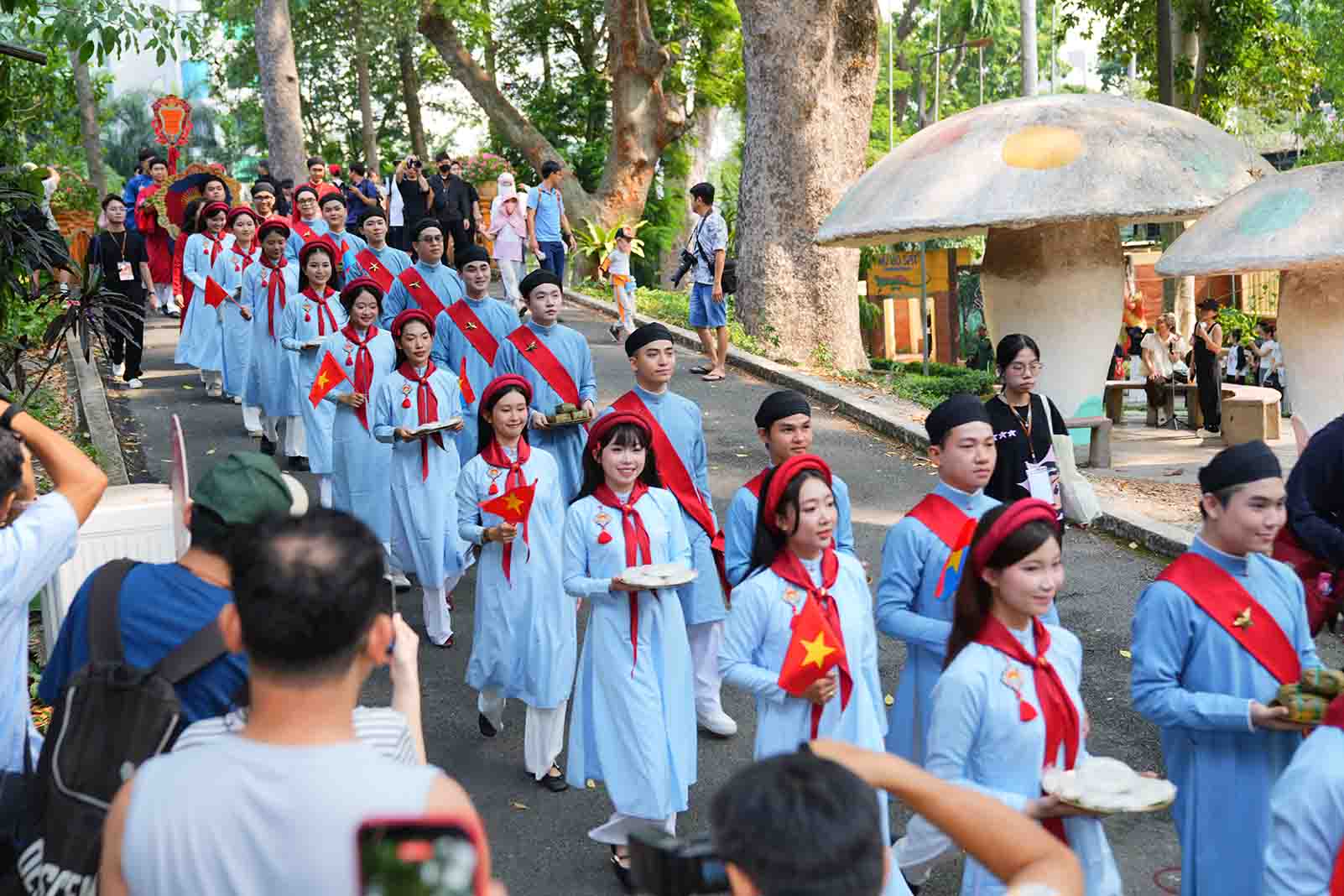 Những nam thanh nữ tú trong tà áo dài ngũ thân không chỉ tham gia diễu hành như một hoạt động văn hóa, mà còn góp phần quảng bá vẻ đẹp Việt phục đến du khách trong và ngoài nước, giúp hình ảnh áo dài Việt trở nên gần gũi và đầy sức sống trong không gian cộng đồng.
