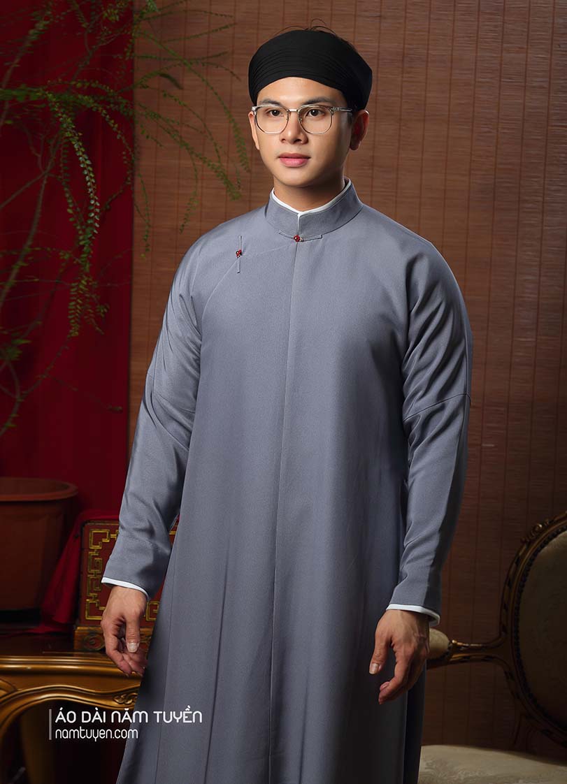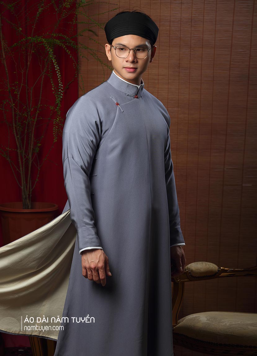Cấu trúc, phom dáng và các chi tiết được nghiên cứu kỹ bởi nghệ nhân Năm Tuyền, thể hiện tính nguyên bản của áo ngũ thân nhưng vẫn hài hòa cho người mặc hiện đại.