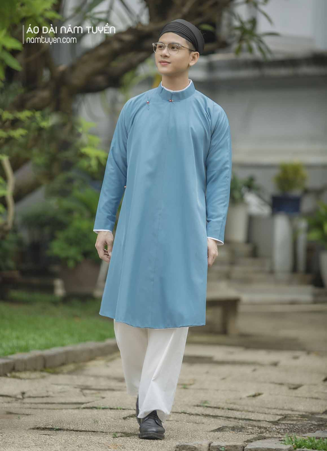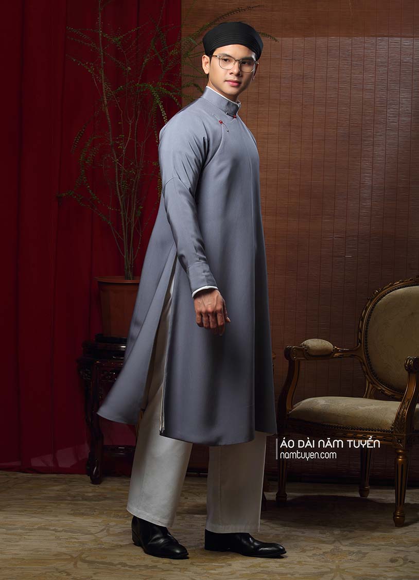 Vạt áo dài quá gối, phom đứng trang nghiêm.