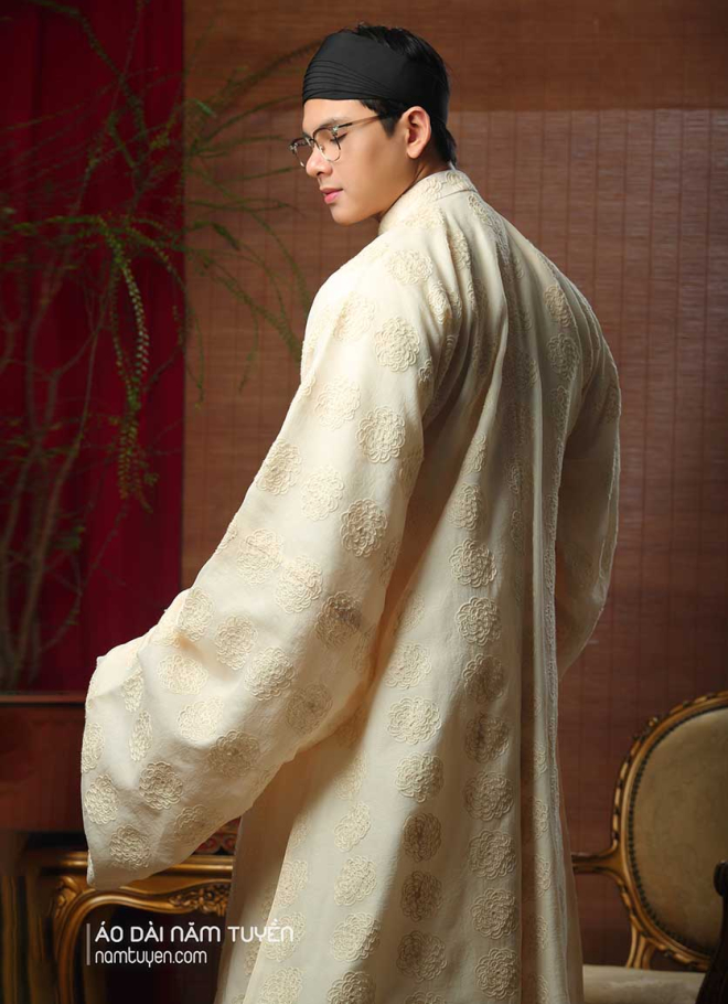 Áo tấc được giữ nguyên form truyền thống: thân áo dài, đường cắt thẳng, tay thụng, nẹp ráp cổ điển và các đường mí gấp tinh tế. Mỗi chi tiết đều được cân chỉnh theo tỷ lệ lịch sử của cổ phục thời Nguyễn, mang lại sự trang nghiêm, thanh nhã khi mặc trong các dịp lễ hội, sự kiện văn hóa, trình diễn nghệ thuật hoặc hoạt động tín ngưỡng.