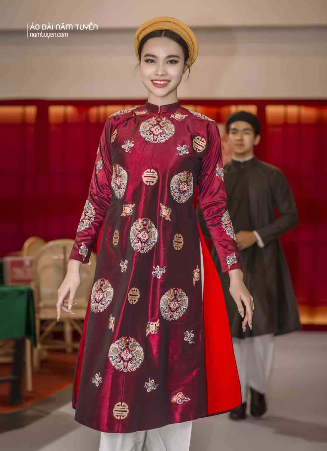 Áo dài ngũ thân của Năm Tuyền luôn được lựa chọn trong những bối cảnh đề cao giá trị truyền thống và hình ảnh phụ nữ Việt: