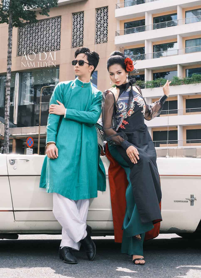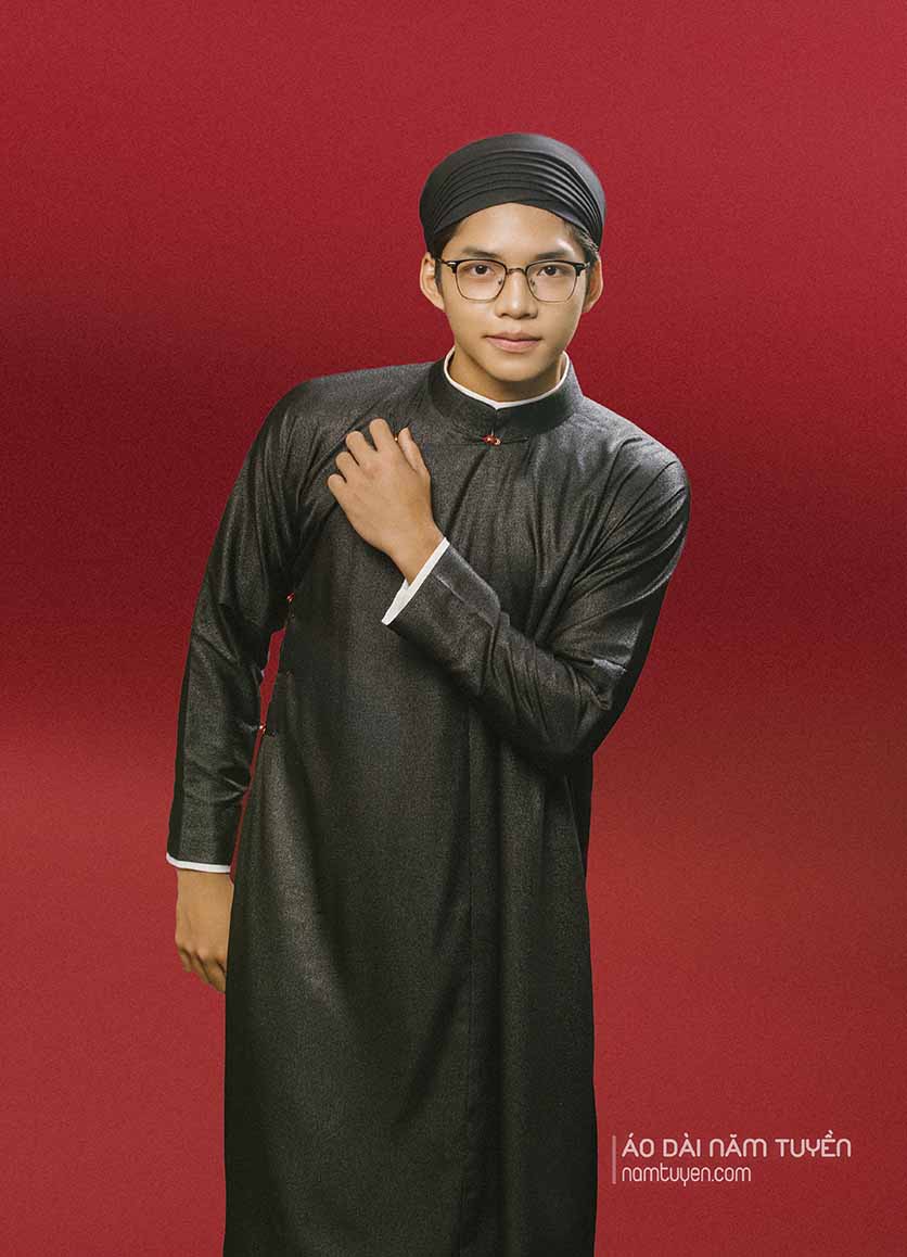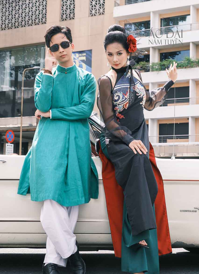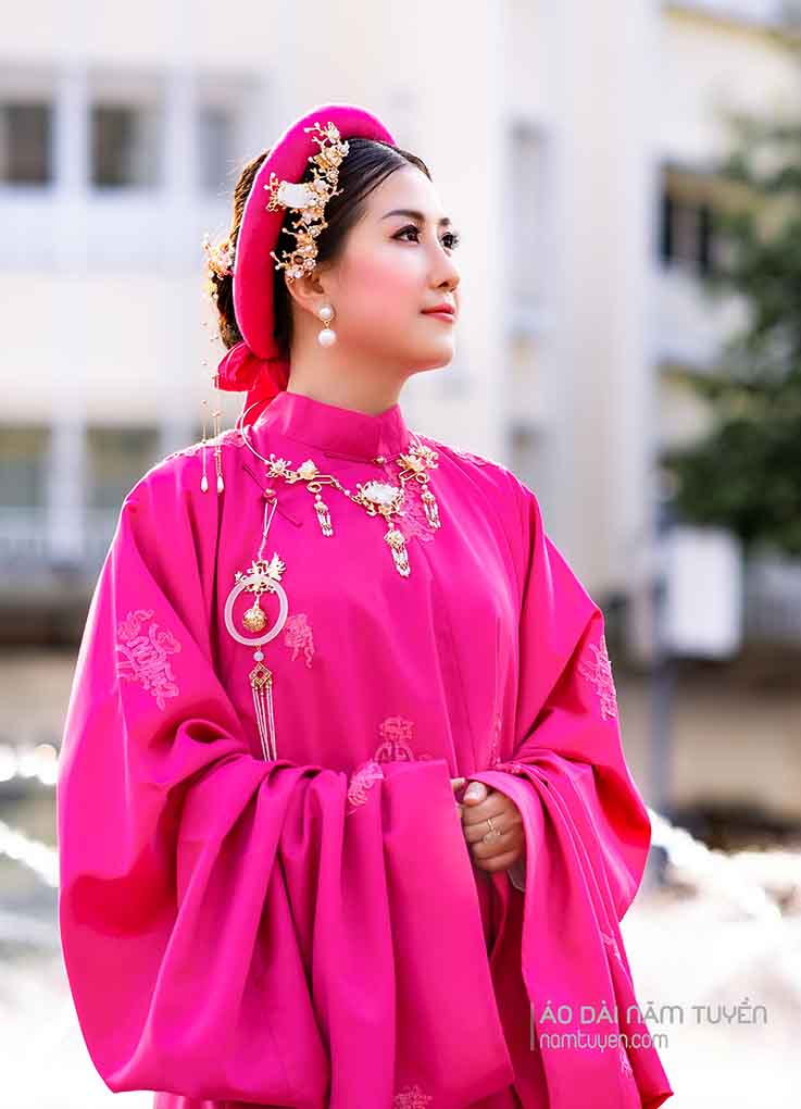 Tất cả được kết hợp hoàn hảo với form áo ôm nhẹ vòng ngực – eo, tôn dáng chuẩn nhưng vẫn giữ chất thanh lịch, kín đáo vốn có của áo dài truyền thống. Chi tiết này không chỉ làm nổi bật đôi tay, mà còn khiến tổng thể thiết kế vừa sang trọng, vừa hiện đại, giữ trọn vẻ đẹp di sản Việt trong từng đường nét.