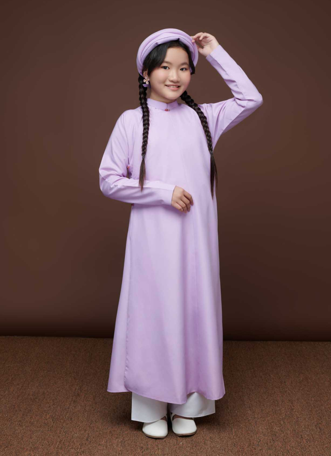 Áo dài truyền thống Việt Nam chuẩn xưa, Vải thoáng mát, dễ chịu cho bé hoạt động. Tông màu trầm ấm có phối lót, May đo tại xưởng Năm Tuyền hoặc chọn sẵn theo bảng size.
